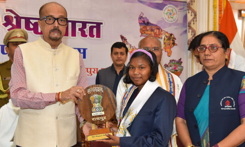 रायपुर : राज्यपाल डेका ने राष्ट्रीय बाल पुरूस्कार से सम्मानित बालिका का किया सम्मान