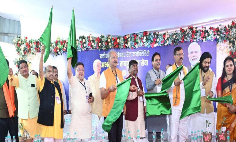 रायपुर : प्रधानमंत्री नरेन्द्र मोदी ने अभनपुर-रायपुर मेमू ट्रेन सेवा का हरी झंडी दिखाकर किया शुभारंभ