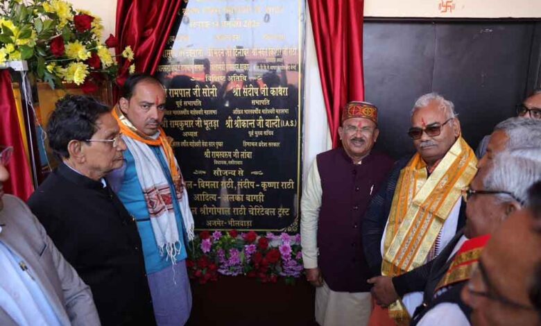 विधानसभा अध्यक्ष श्री वासुदेव देवनानी एवं शिक्षा एवं पंचायतीराज मंत्री श्री मदन दिलावर ने अजमेर के पास खेड़ा श्रीनगर में मंगलवार को भामाशाह श्री गोपाल राठी परिवार द्वारा 2.64 करोड़ रूपए की लागत से निर्मित चंदनमल रामनारायणी राठी राजकीय प्रवेशिका संस्कृत विद्यालय के भवन का लोकार्पण किया।