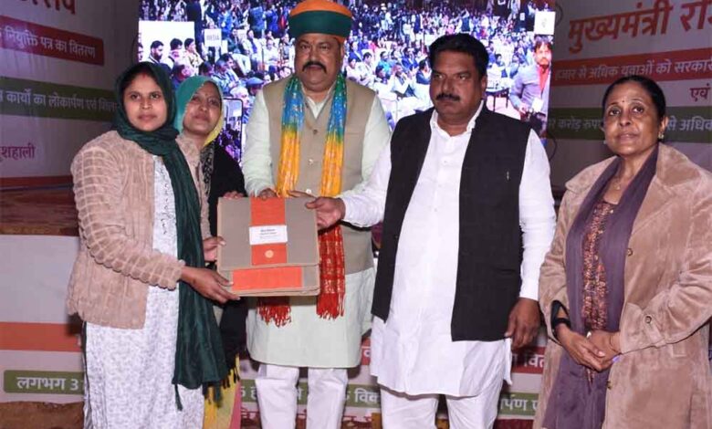 जिला प्रभारी मंत्री श्री विजय सिंह चौधरी, जिला कलेक्टर कल्पना अग्रवाल तथा कोटपूतली विधायक हंसराज पटेल ने नवनियुक्त कार्मिकों को नियुक्ति पत्र सोंपे, जिले के 230 नवनियुक्त कार्मिकों ने राज्य सरकार का आभार जताया । मुख्यमंत्री रोजगार उत्सव के तहत कोटपूतली में जिला स्तरीय कार्यक्रम आयोजित हुआ।