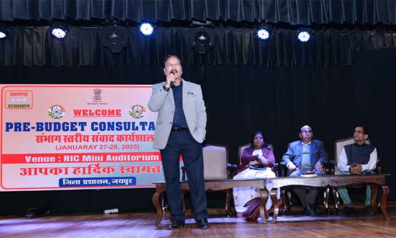 अतिरिक्त जिला कलक्टर ने कार्यशाला में कहा कि विषय विशेषज्ञों द्वारा प्राप्त सुझावों के आधार पर वित्तीय बजट तैयार करने सरकार को महत्वपूर्ण सहयोग मिलेगा। कार्यशाला में उप महानिरीक्षक पंजीयन डॉ. गोरधन लाल शर्मा ने बताया कि उद्घाटन सत्र में कर्मचारी संगठनों के प्रतिनिधियों , उद्योग एवं सेवा क्षेत्र के हितधारकों, कर सलाहकारों एवं व्यवसायों ने महत्वपूर्ण सुझाव दिए। व्यापार मंडल अध्यक्ष श्री जगदीश सोमानी, अखिल भारतीय गौशाला परिषद के अध्यक्ष डॉ. अतुल गुप्ता, लघु उद्योग भारती की अध्यक्ष श्रीमती सुनीता शर्मा सहित अन्य पांच केन्द्रों की अध्यक्षों ने भी चर्चा में महत्वपूर्ण सुझाव दिए, इसके साथ-साथ राजस्व कार्मिकों के जिला अध्यक्ष श्री राकेश पाराशर, अधीनस्थ लेखा सेवा के जिला अध्यक्ष श्री विवेकानन्द शर्मा, हैण्ड ब्लॉक के प्रिंट कला सांगानेर के अध्यक्ष डॉ. ब्रज वल्लभ, होटल ऐसोशियसन के अध्यक्ष श्री मोहम्मद हुसैन खान, भरतपुर से श्री अनुराग गर्ग सहित अन्य विषय विशेषज्ञों ने महत्वपूर्ण सुझाव दिए। इसी प्रकार द्वितीय सत्र में विभिन्न चिकित्सा पद्धतियों एवं चिकित्सा सेवाओं, पंचकर्म इत्यादि के माध्यम से मानव स्वास्थ्य को बेहतर बनाने के विषय में महत्वपूर्ण सुझाव भी कार्यशाला में दिए गये। इस दौरान जिला उद्योग केन्द्र की महाप्रबंधक शिल्पी पुरोहित, कोषाध्यक्ष श्री विजय कौशिक सहित 40 विषय विशेषज्ञों ने कार्यशाला को सम्बोधित किया।