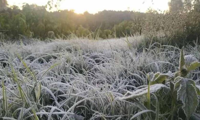 छत्तीसगढ़ में कड़ाके की ठंड, पत्तों पर जमी बर्फ की चादर