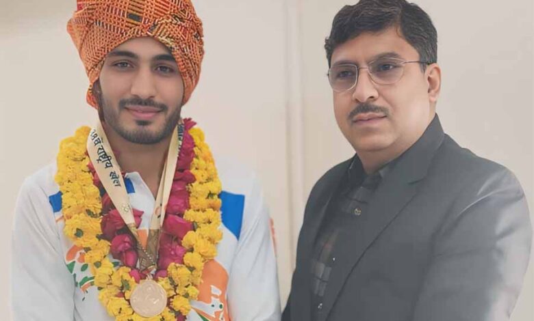 38वें नेशनल गेम्‍स में शुभम गोरा ने जीता गोल्‍ड मैडल, अतिरिक्त आयुक्त शाह सहित अन्य अधिकारियों ने दी बधाई