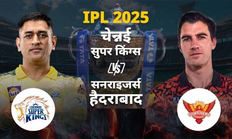 चेन्नई सुपर किंग्स और सनराइजर्स हैदराबाद के बीच आईपीएल 2025 का 43वां मुकाबला शुक्रवार को एम चिदंबरम स्टेडियम में खेला जा रहा है। सनराइजर्स हैदराबाद के कप्तान पैट कमिंस ने टॉस जीतकर पहले गेंदबाजी का फैसला किया है।चेन्नई ने दो बदलाव किए हैं। रचिन और शंकर को बाहर का रास्ता दिखाया गया है, जबकि ब्रेविस और हुड्डा को प्लेइंग इलेवन में जगह मिली है।