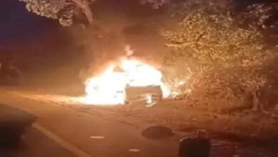 छत्तीसगढ़-कोरबा में तेज रफ्तार कार पेड़ से टकराने से लगी भीषण आग, ड्राइवर को पुलिस ने बचाया