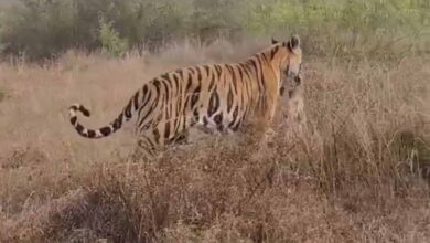 पर्यटकों ने बाघ पी-141 को एक हिरण का शिकार करते हुए देखा, पर्यटकों ने इस रोमांचित पल को किया कैद