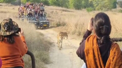 पन्ना टाइगर रिजर्व प्रबंधन ने पांच वाहनों पर प्रतिबंध लगाया, बाघ परिवार को पर्यटको ने घेरा