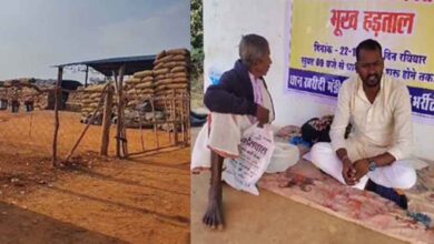 छत्तीसगढ़-मानपुर में धान खरीदी में देरी के कारण अनशन पर बैठा युवक, समर्थन देने पहुंचे सैकड़ों किसान