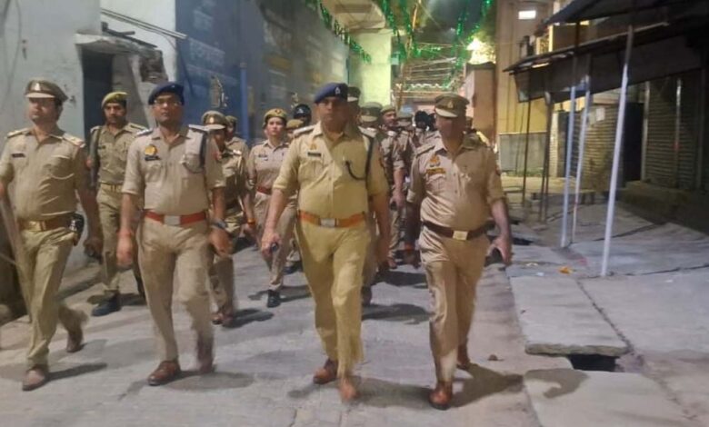 मथुरा में मिश्रित आबादी वाले इलाकों में पुलिस बल तैनात