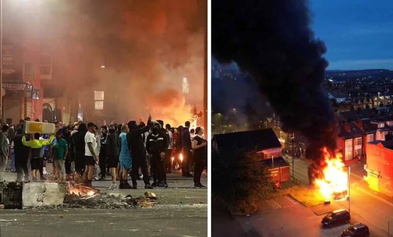 ब्रिटेन : लीड्स में दंगे… सड़कों पर जमकर उत्पात, आगजनी और हिंसा की देखें तस्वीरें