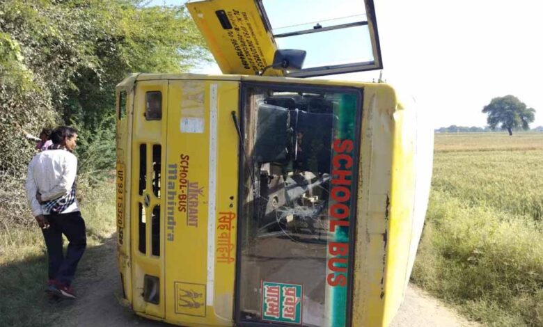 बेकाबू स्कूल बस पलटी, 15 छात्र-छात्राएं घायल