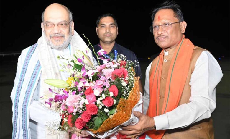 केंद्रीय गृह मंत्री शाह का मुख्यमंत्री साय ने स्वामी विवेकानंद विमानतल पर किया आत्मीय स्वागत
