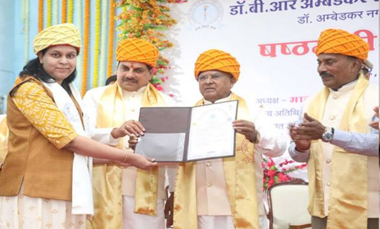 दीक्षांत समारोह में संस्थान के 16 शोधार्थियों को पीएचडी की उपाधि प्रदान की गई। अम्डेकर विश्वविद्यालय के द्वारा विगत 5 वर्षों में 100 से अधिक शोधार्थियों ने पीएचडी की उपाधि प्राप्त की है। वहीं बीते सत्र में विश्वविद्यालय से 851 विद्यार्थियों ने डिग्री हासिल की है। इसमें से पीएचडी करने वाले विद्यार्थियों को मंच पर डिग्री प्रदान की गई। आरंभ में अतिथियों द्वारा माँ सरस्वती, भगवान बुद्ध और बाबासाहेब की प्रतिमाओं पर माल्यार्पण और दीप प्रज्ज्वलित कर समारोह का शुभारंभ किया। स्वागत उद्बोधन विश्वविद्यालय के कुलगुरु रामलाल अत्राम ने दिया। आभार कुलसचिव ने माना।