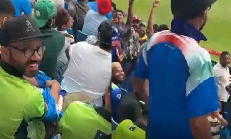 सोशल मीडिया पर वायरल वीडियो में देखने को मिल रहा है कि एक पाकिस्तानी फैन IND vs PAK मैच के दौरान भारत की नीली जर्सी पहन रहा है। वीडियो बनाता हुआ शख्स कहता नजर आ रहा है, ‘टीम चेंज करता हुआ बंदा…पाकिस्तान का बंदा पहन रहा है इंडिया की जर्सी।’ इसके बाद वहां मौजूद सभी भारतीय फैंस उसका सपोर्ट करते नजर आए और पाकिस्तानी फैन ने भारत की जर्सी पहन भी ली।