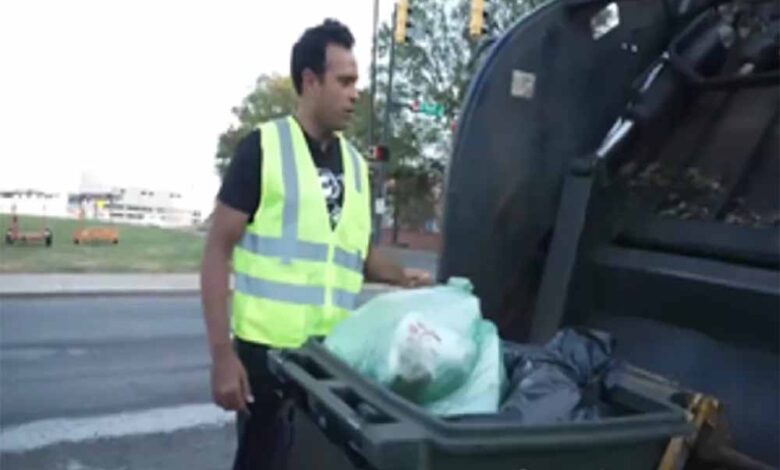 विवेक रामास्वामी ने अमेरिकी राष्ट्रपति जो बाइडेन की टिप्पणी पर प्रतिक्रिया स्वरूप सड़क पर कचरा उठाया, दिखाई एकजुटता
