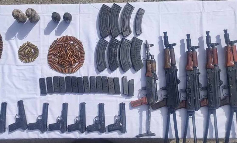 श्रीनगर स्थित चिनार कॉर्प्स ने ‘एक्स’ पर एक पोस्ट में कहा, “विशिष्ट खुफिया जानकारी के आधार पर 17 दिसंबर को भारतीय सेना और जम्मू-कश्मीर पुलिस ने सामान्य क्षेत्र अमरोही, तंगधार, कुपवाड़ा में एक संयुक्त तलाशी अभियान शुरू किया। तलाशी के दौरान चार पिस्तौल, पिस्तौल की छह मैगजीन, लगभग चार किलोग्राम मादक पदार्थ और अन्य युद्धक सामग्री बरामद की गई है। पोस्ट में कहा गया, “चिनार कॉर्प्स कश्मीर को आतंक-मुक्त रखने की अपनी प्रतिबद्धता पर कायम है।”
