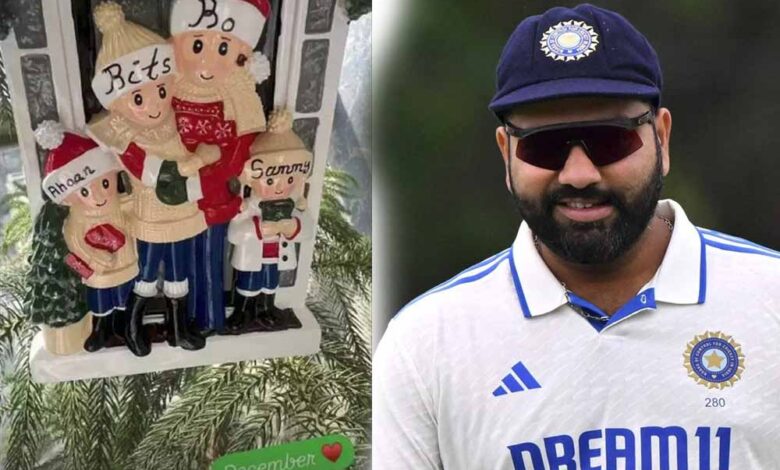 एक क्रिसमस थीम की मूर्ति सी है, जिसमें एक पर लिखा है Rits यानी रितिका, दूसरे पर लिखा है Ro यानी रोहित शर्मा, तीसरे पर लिखा है…Sammy यानी समायरा और चौथे छोटे से बच्चे के सिर पर लिखा है Ahaan इससे पता चलता है कि रोहित शर्मा के बेटे का नाम अहान रखा गया है।
