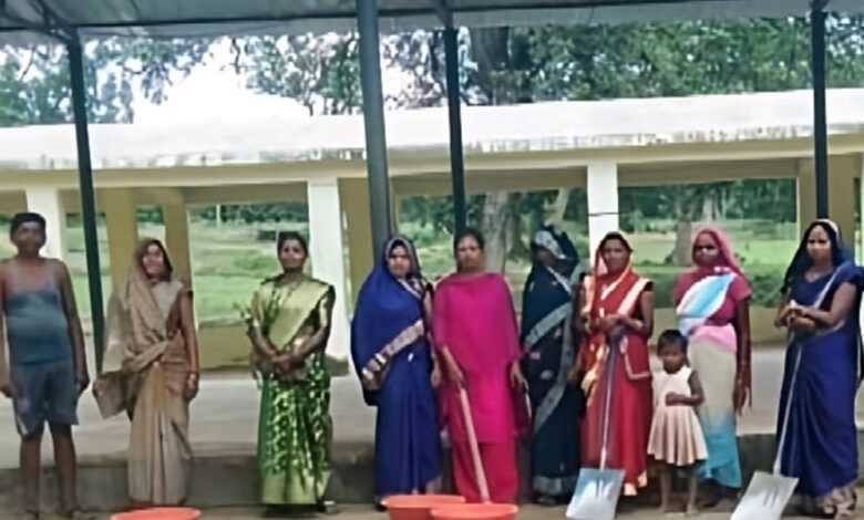 समूह की महिलाओं ने बिहारपुर हॉट बाजार की श्रमदान कर की सफाई
