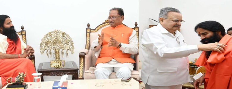 योग गुरु बाबा रामदेव ने मुख्यमंत्री निवास में सीएम साय से की सौजन्य मुलाकात